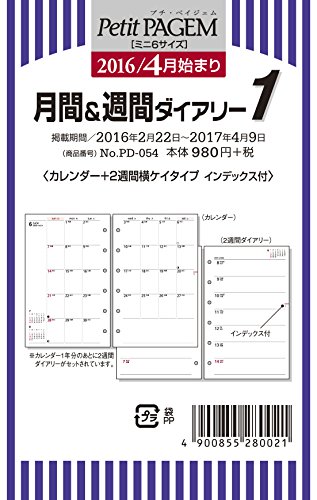 能率 プチペイジェム 手帳 リフィル 16 4月始まり ウィークリー カレンダー Pd054 文具百貨